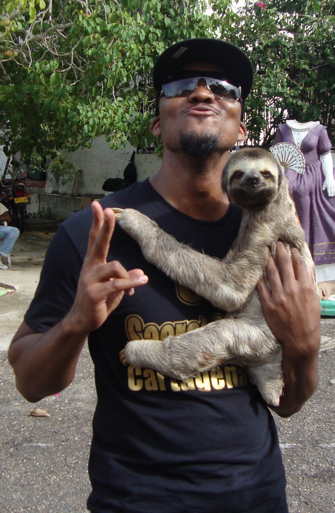 Me with a sloth outside of the Convento de la Popa, a 400 yr old monastery in Cartagena, Colombia (2012)